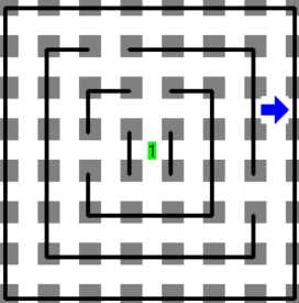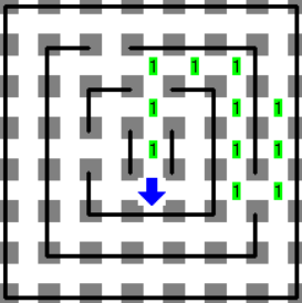 - Para obtener puntos en este problema, Karel debe dejar un camino de montones de 1 zumbador desde su posición de inicio hasta el centro del laberinto.