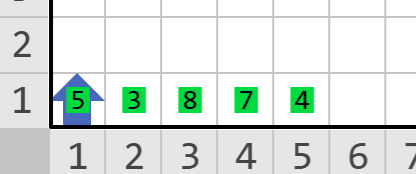 En este ejemplo Karel tiene las tarjetas 3, 4, 5, 6 y 7. NO HAY REPETIDAS y TODAS SON CONTINUAS. Por lo tanto Karel debe apagarse orientado al NORTE.