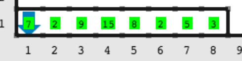 - Para obtener puntos en este problema, Karel deberá dejar en cada posición de la primera fila un montón de zumbadores igual a la altura del prisionero que obstruye la visión del prisionero originalmente en esa posición. En caso de que el prisionero en esa posición alcance a ver hasta la pared, deberá dejar 0 zumbadores.