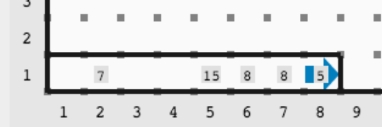 La fila de prisioneros está delimitada por paredes que hacen un mundo de una fila de alto y \(N\) columnas de ancho. En este mundo Karel se enfrenta con su último problema de la OMI: