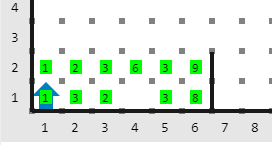 Por ejemplo, si Karel tiene de colección de longitud 6 formada por los poderes: \([1, 3, 2, 0, 3, 8]\), y Gretel tiene una colección de: \([1, 2, 3, 6, 3, 9]\). Entonces el mundo se vería de la siguiente forma:
