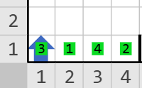 Karel tiene una lista de zumbadores que inicia en (1,1) y continua a la derecha sin espacios en blanco. Esta lista esta delimitada por una pared.