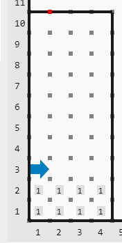 Ayuda a Karel Parker a saber qué tan llena terminará su taza de chocolate. El mundo representa la taza; hay una columna de zumbadores que representa el chocolate que está rellenando la taza (el chocolate siempre está pegado a la pared del norte). Dibuja cómo queda el chocolate en la taza cuando acaba de servirse.