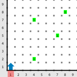 - Karel inicia en la posición (1, 1) orientado al norte.