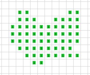 Escribe un programa que dado el queso de Karel, rellene todos sus huecos con montones de un zumbador. Tu programa debe dejar en el mundo todos los zumbadores del queso y no debe poner ningún zumbador fuera del queso.