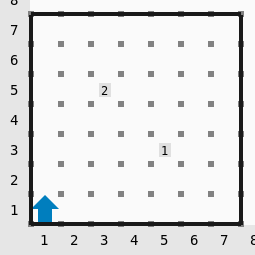- Karel inicia en la casilla \((1, 1)\) viendo al norte.