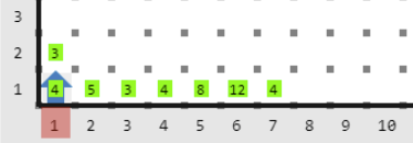 Los tiempos que midió Karel se representan como una lista de montones de zumbadores en la primera fila del mundo, el número de zumbadores en el montón representa el tiempo.